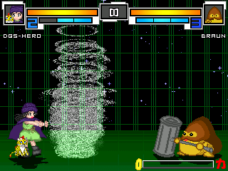 竜巻で相手を吹き飛ばします。相手の位置によっては全段ヒットしないこともあります。